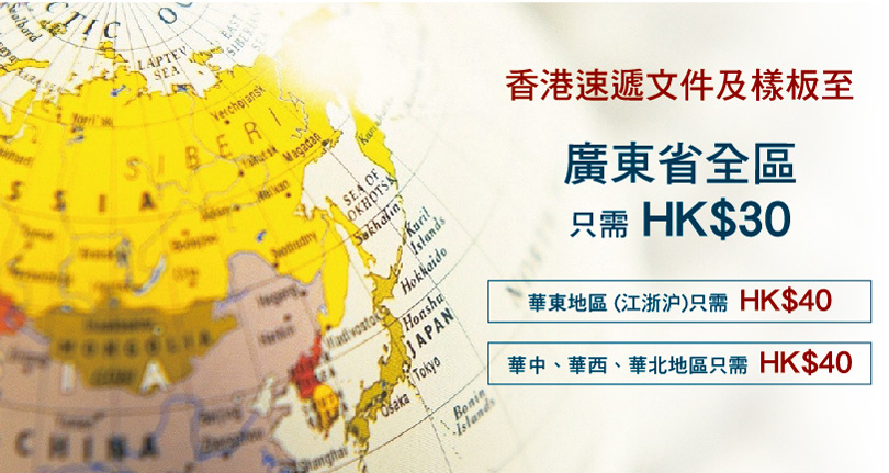 速遞服務範圍包括中、港、澳及台灣速遞服務